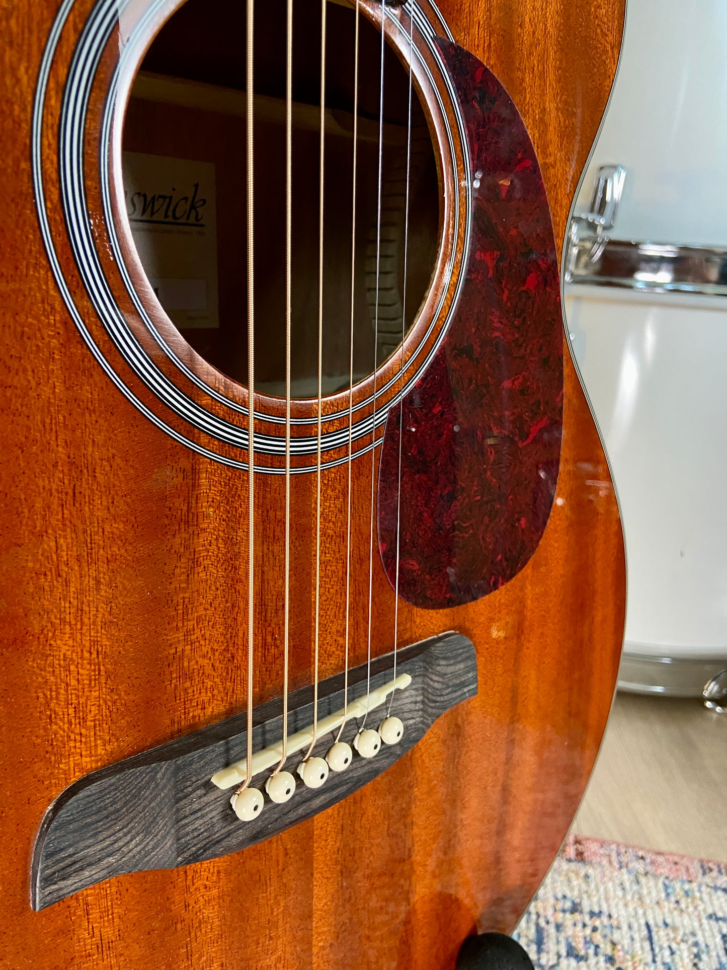 This Brunswick Grand Auditorium Acoustic Guitar really will take your guitar playing to the next level. With it's Mahogany top and body, it both looks and sounds incredible!