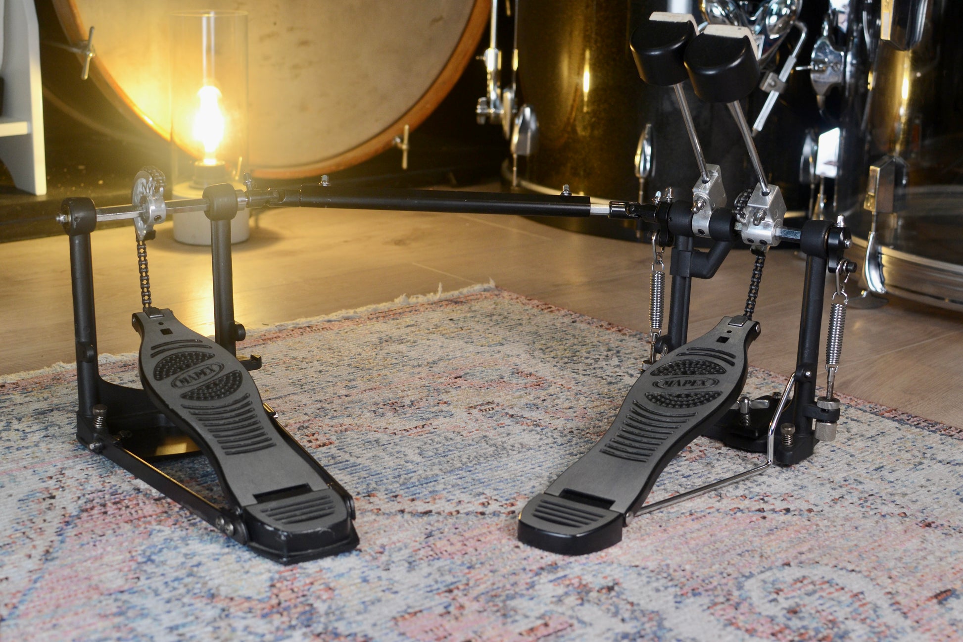 This Mapex right footed double bass drum pedal feels good under foot, with double sided beaters to get just the right sound! Solid, but also lightweight, utilising a frame base and not a cast one.