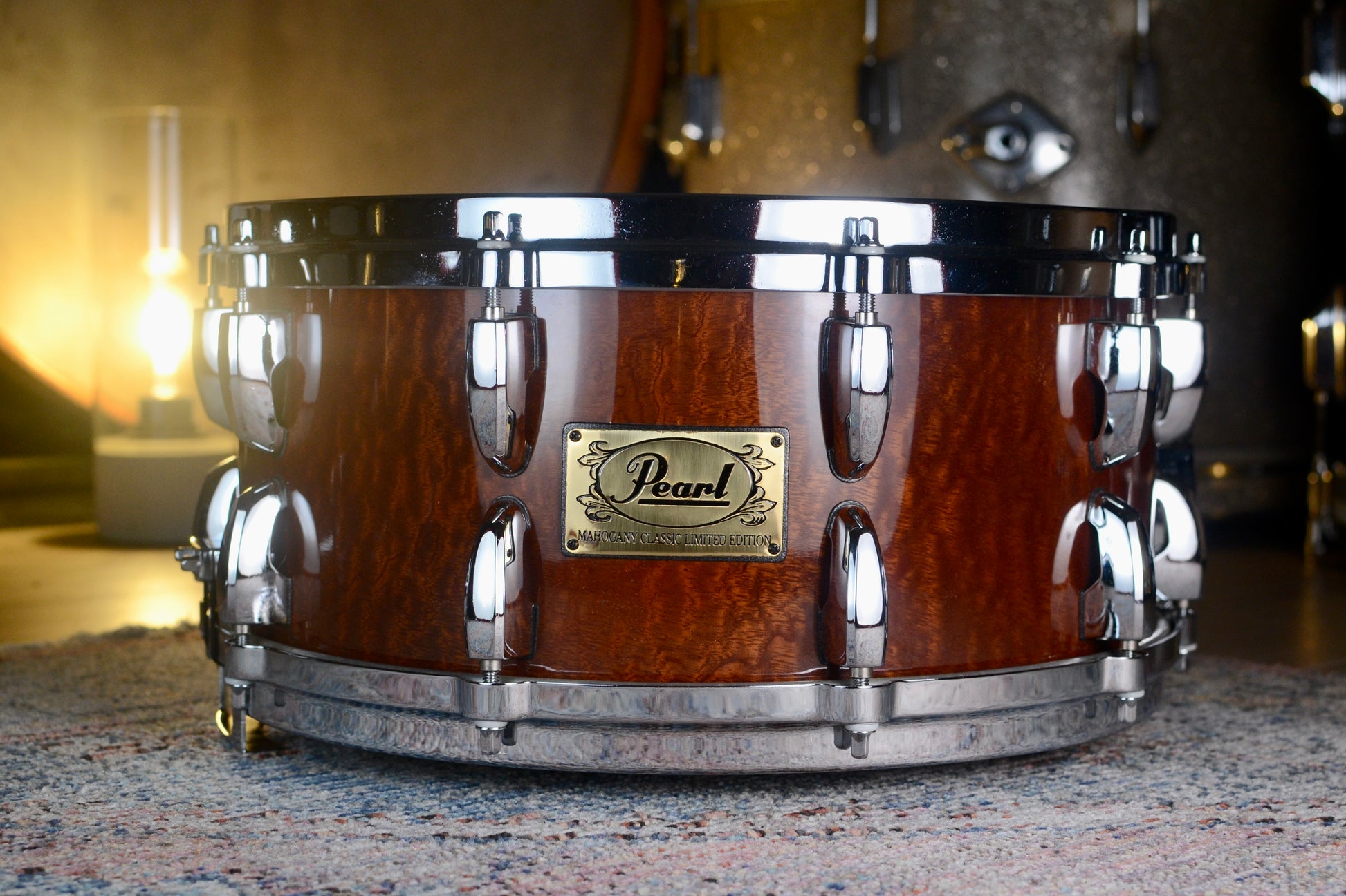 Pearl's Mahogany Classic Limited Edition snare drum has a unique 100% premium African Mahogany 4-ply shell with proportional reinforcement rings that produces a very warm, resonant full bodied classic tone.