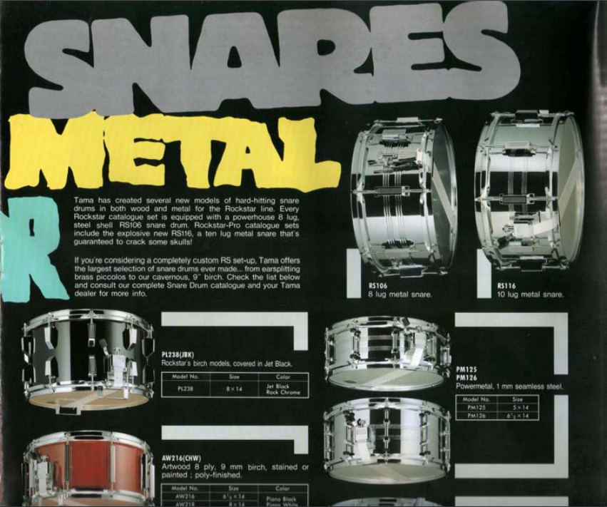 Tama 'RS106' 14x6.5” Rockstar Steel Snare Drum - 1988
